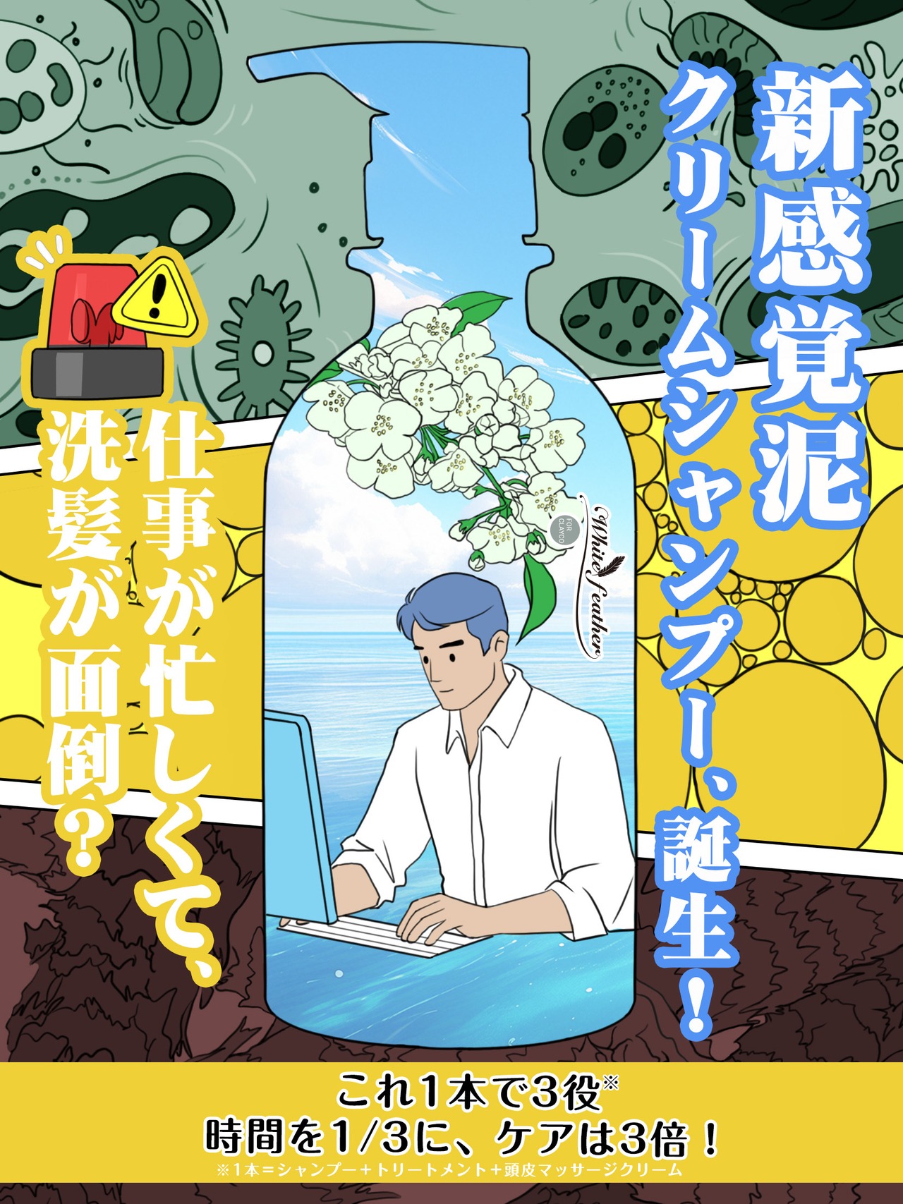 クレイクリームシャンプーは、洗顔からシャンプー、トリートメント、頭皮ケアまでこれ一本で実現します。一日の疲れをリセットし、しっかりと汚れを落としながら潤いを与えます。