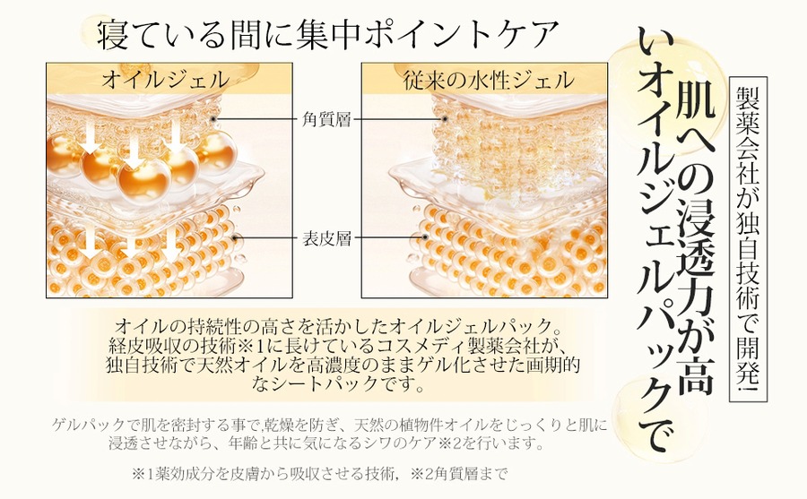●植物オイル配合、貼って寝るだけで、気になる部分をポイントケア! 一晩中、美容成分が肌にじんわーりと働きかけます。