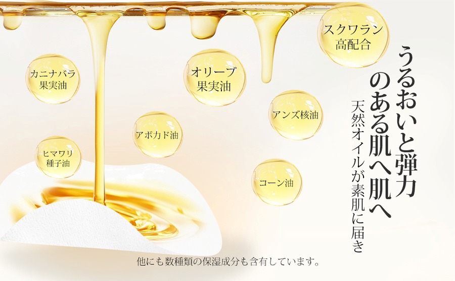 ●天然オイルを活かしたジェル化技術 独自の技術でジェル状にした天然オイルは、皮膚への浸透性が高く、しっかりと栄養を届けます。