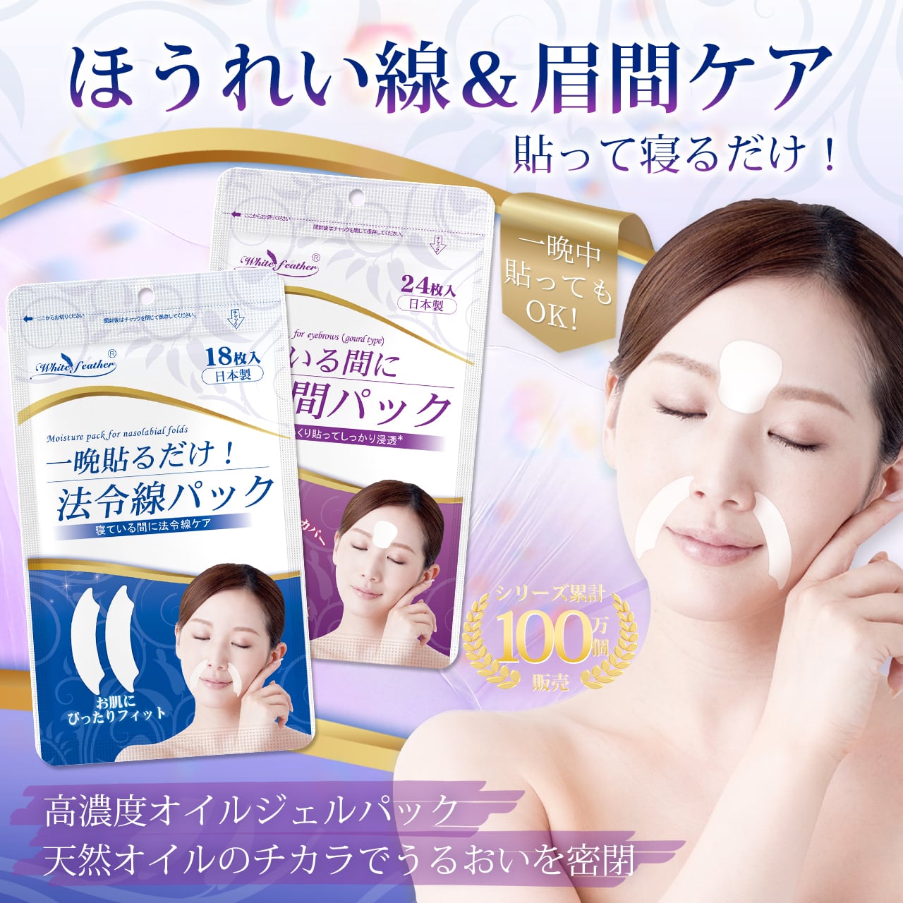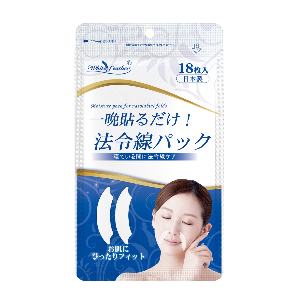 【White feather】オイルジェルパック 眉間 法令線 寝ている間にケア シワ対策 エイジングケア 楽々ピンポイントケア 日本製